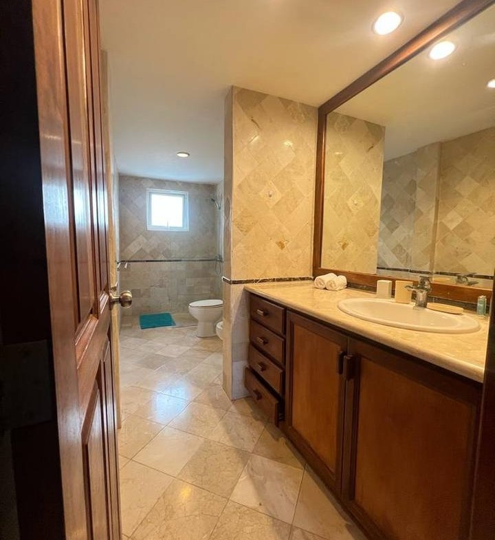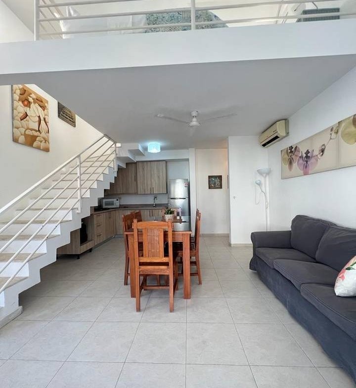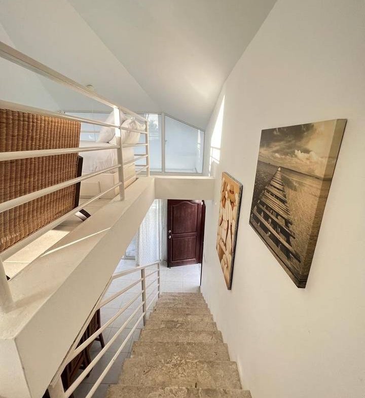 Apartamento con mezzanine y vista al mar, ubicado en segundo nivel, con una superficie de 120 m² más área adicional en mezzanine. Dispone de cocina, sala, comedor, 2 habitaciones, 2 baños y terraza.