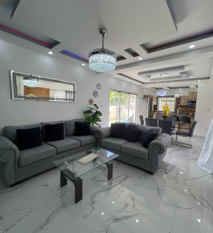 Villa moderna y cómoda en Bávaro, totalmente amueblada. Construida sobre un terreno de 250 m² con 150 m² de construcción distribuidos en dos niveles.