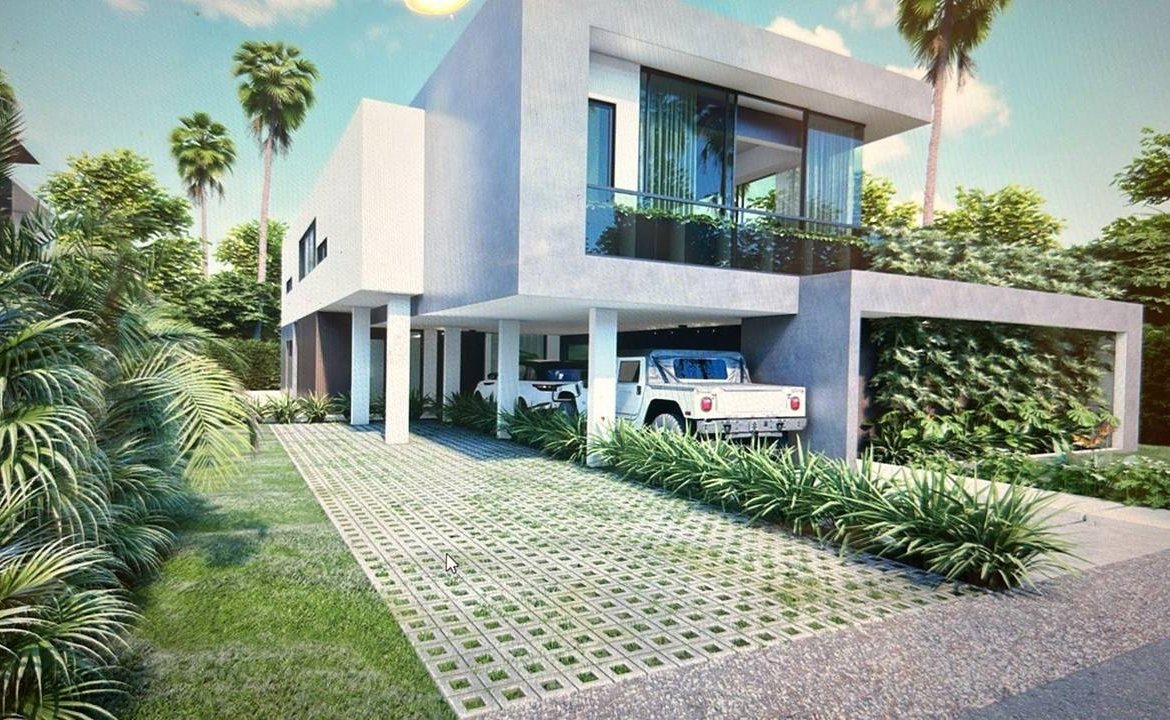 Villa amplia y moderna de dos niveles en Punta Cana Village, diseñada con espacios abiertos para el disfrute familiar. Construida sobre un terreno de 703 m² con 413 m² de construcción total.