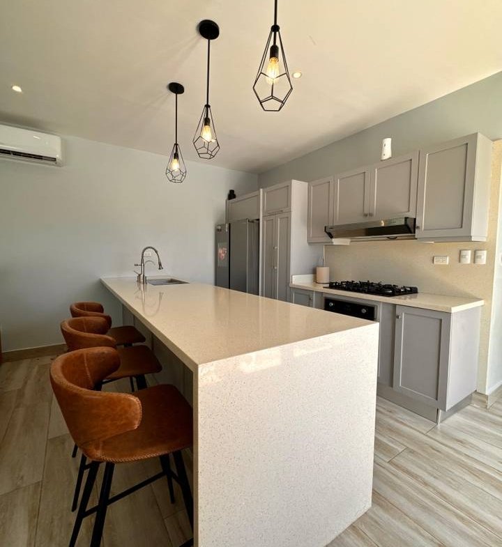 Villa amueblada en Bávaro, lista para habitar y con excelente ubicación dentro de un residencial cerrado. Construida sobre un terreno de 316 m², cuenta con 160 m² de construcción distribuidos en 3 habitaciones, 3 baños completos, sala, comedor y cocina con desayunador.