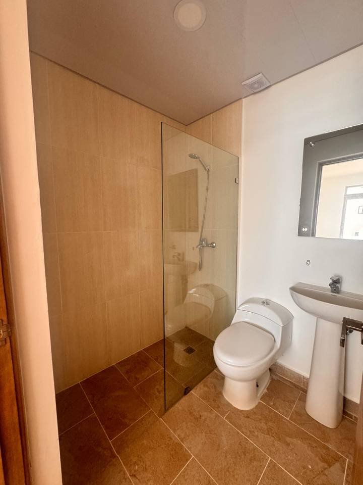 La distribución incluye 2 habitaciones, 2 baños completos, sala luminosa, comedor, cocina equipada, área de lavado y balcón integrado.